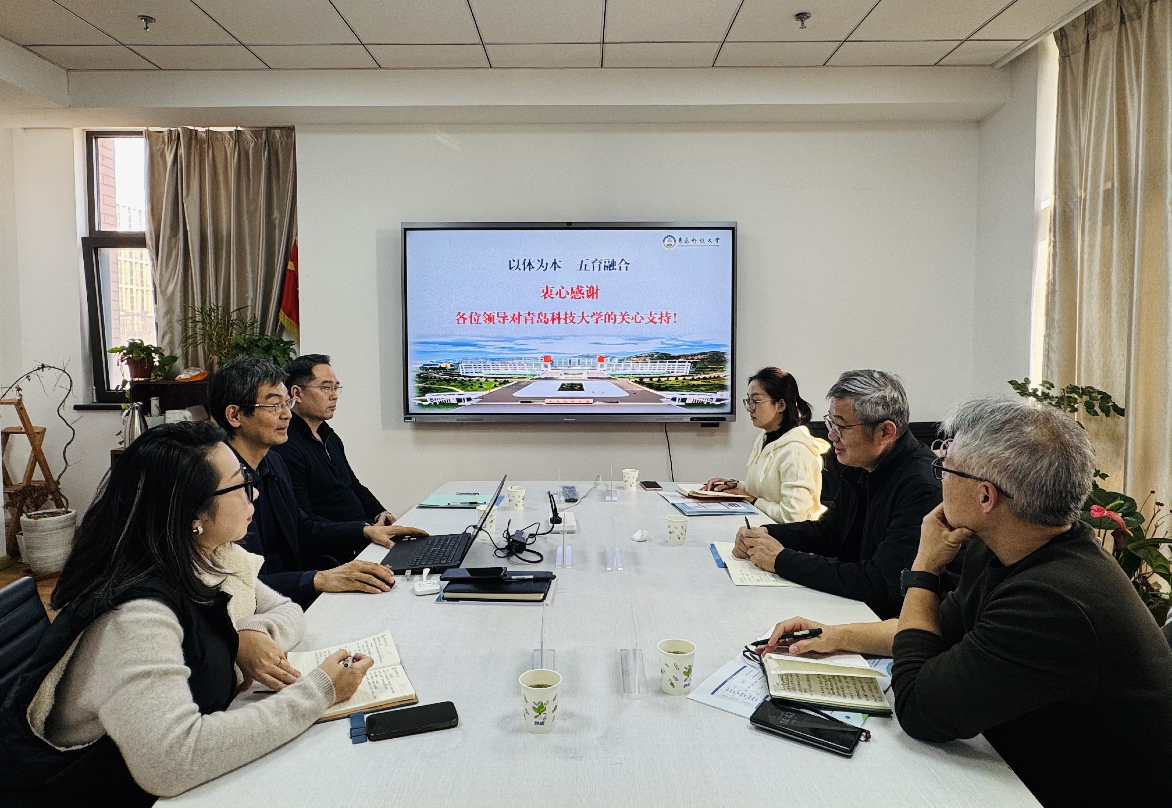 会上,楚晓东教授对崔文新一行来校调研表示热烈欢迎,并详细介绍了我校以“以体为本 五育融合”为理念的“三平台五结合一体化”工作运行机制。他从学校体育工作基础、创新实践、初步成效三个方面,系统阐述了我校在课程重构、活动创新、评价改革、智慧体测中心建设及推行“健康跑”必修学分等方面的创新举措与实践成果。