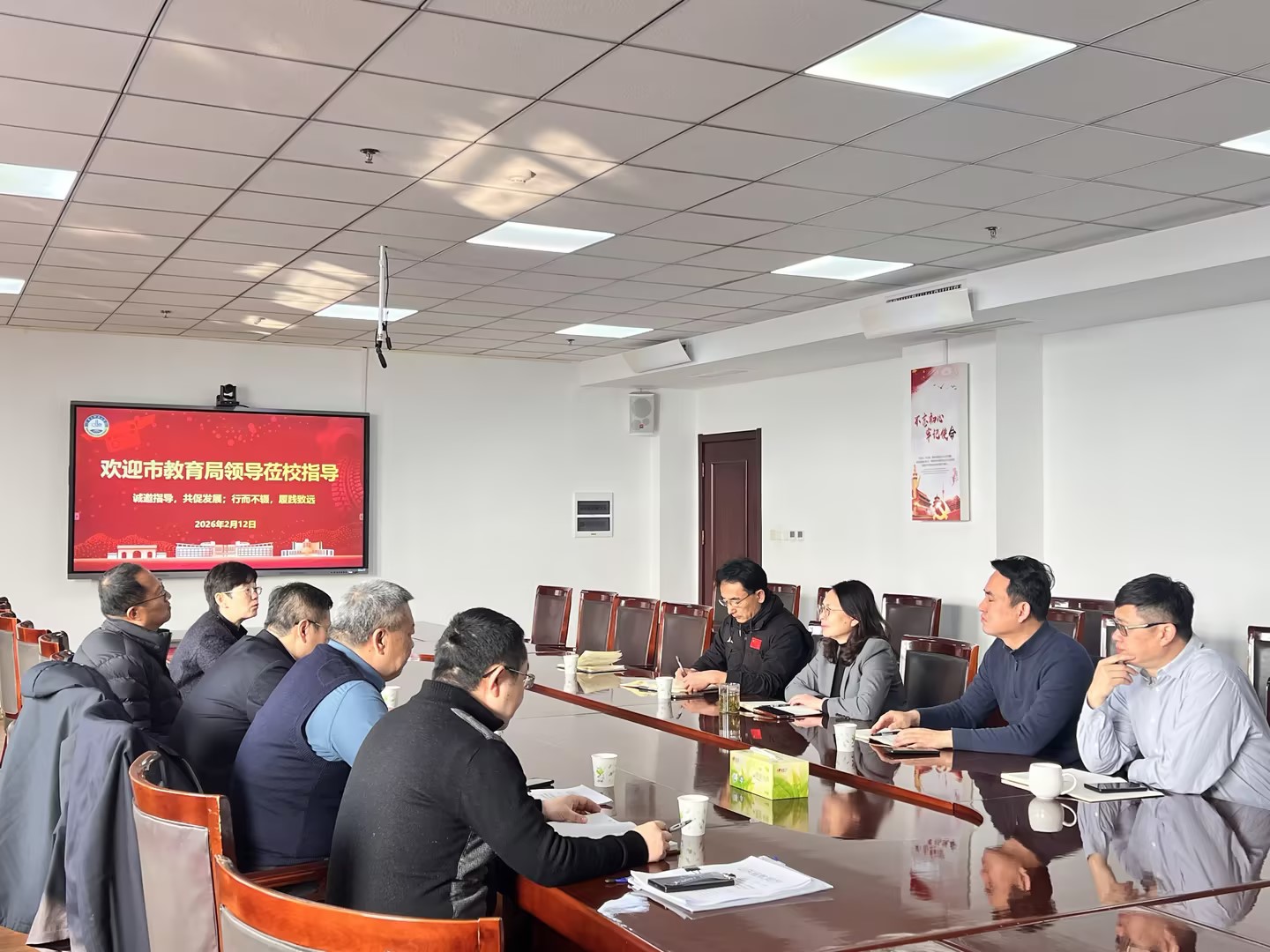 2026年2月12日,青岛市教育局总督学李晓元带领职教处、艺体卫处及青岛财经学校相关负责人一行,赴青岛科技大学进行专题调研座谈。双方围绕成立青岛足球学院合作框架协议展开深入交流,并就“3+4”中职与本科贯通培养模式进行具体磋商。