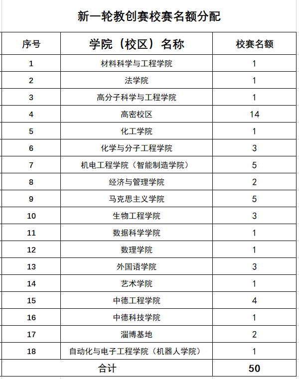 根据各学院、校区提交作品数量及省赛获奖情况,校赛名额分配如下: