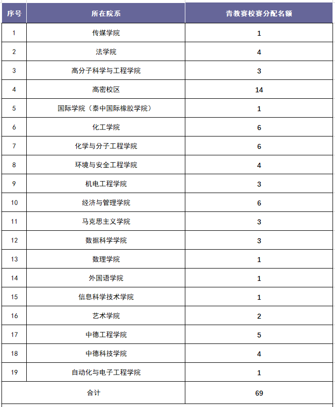 根据各学院(校区)提交作品数量及去年省赛获奖情况,校赛名额分配如下: